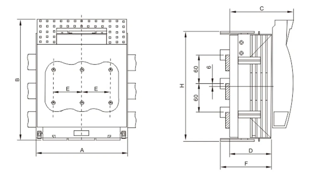 Der Sicherungslasttrennschalter XUCKY HR17B kann mit Last betrieben werden. Es gilt für einen Nennstrom von 40 A bis 630 A. Es gibt 2 Gruppen, 3 Gruppen und 4 Gruppen. Es kann auf der Sammelschiene montiert und auf der festen Platte installiert werden. Es stellt auch die Eingangs- und Ausgangsstruktur der oberen und unteren Enden, die Einführung der Messerkante und die Lichtbogenlöschvorrichtung bereit; und das geschlossene Erkennungsloch befindet sich auf der Schalterabdeckung, der Signalschalter und der Erkennungsschalter sind eingebaut. Er kann mit einem Sicherungswächter ausgestattet und als Messerschalter verwendet werden.